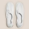 Square-toe pump with pleated toe detail, crafted in unlined soft lambskin.