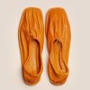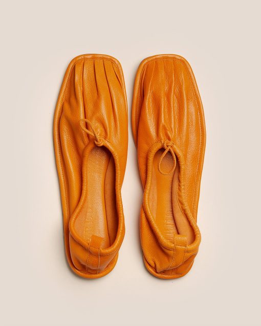 Square-toe flat pump with pleated toe detail, crafted in supple shiny lambskin.