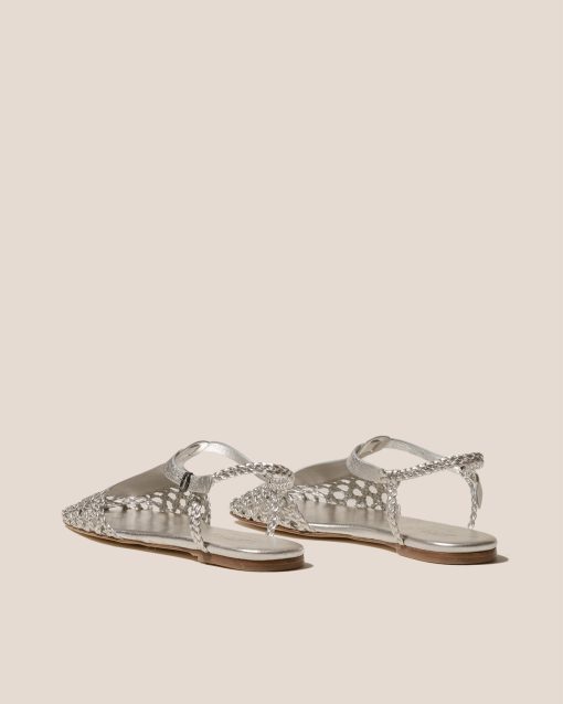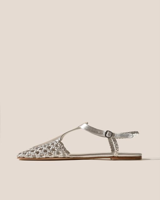 HEREU Women’s Shoes Reixa Metallic – Woven T-bar Sandal | Light Silver