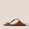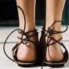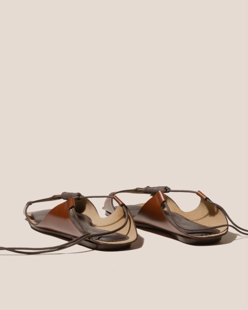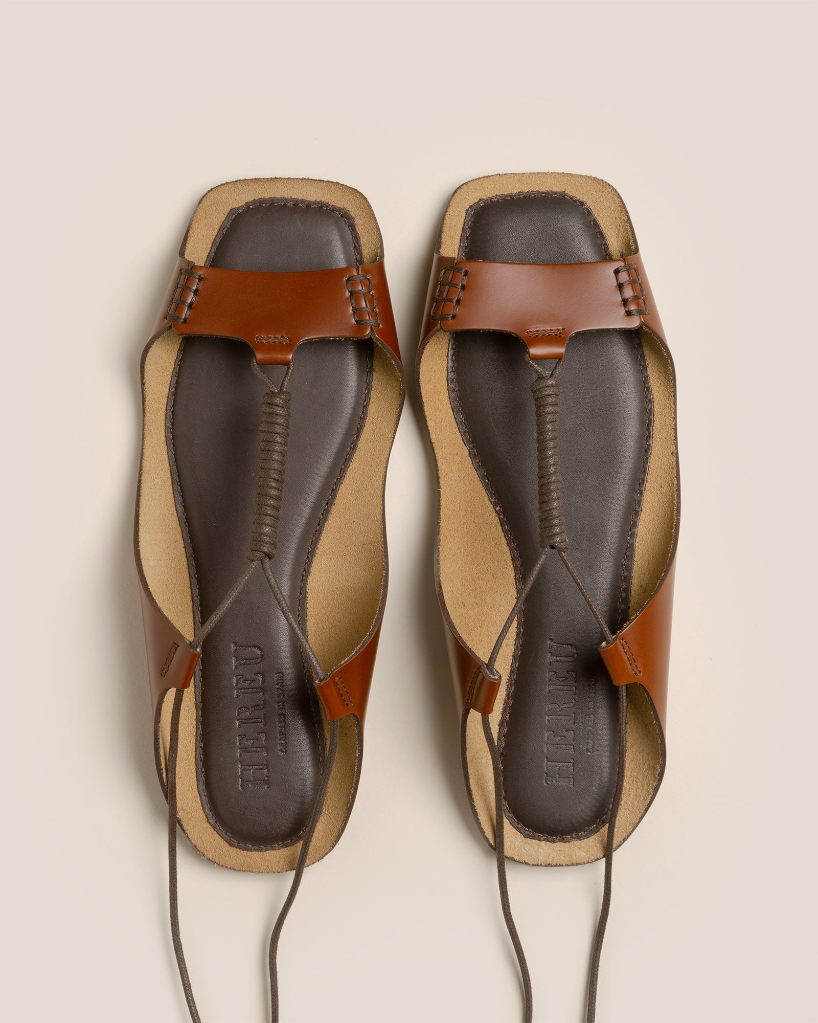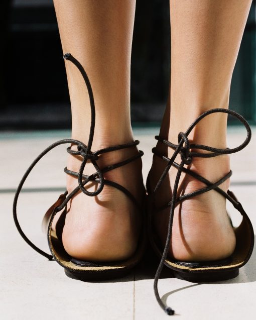 Flat ankle lace sandal crafted in structured leather with waxed cotton laces.