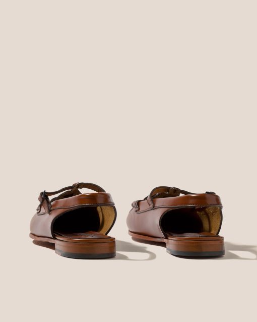 Slingback t-bar loafer with interwoven front detail, crafted in Spanish full-grain calf leather. Hand-sewn using the traditional moccasin construction. The outsole is stitched to the upper for extra flexibility and durability.