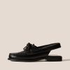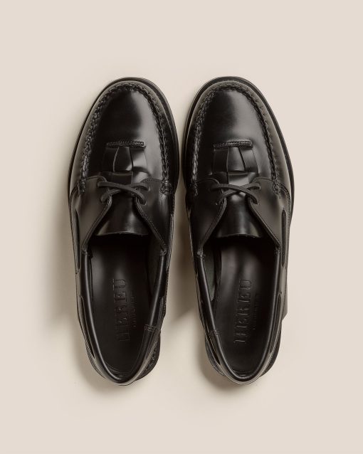Women’s slingback loafer with a lace detail, crafted in Spanish full-grain calf leather. Hand-sewn using the traditional moccasin construction. The outsole is stitched to the upper for extra flexibility and durability.
