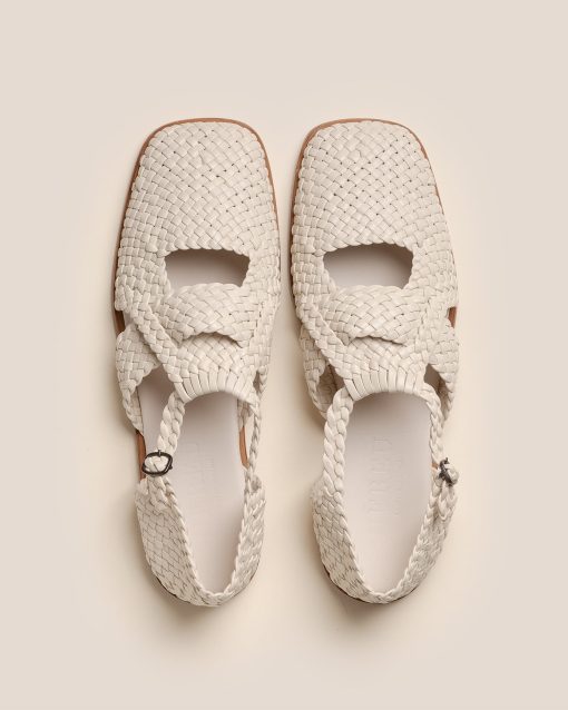 HEREU Women’s Shoes Serra – Woven T-bar Sandal | Cream
