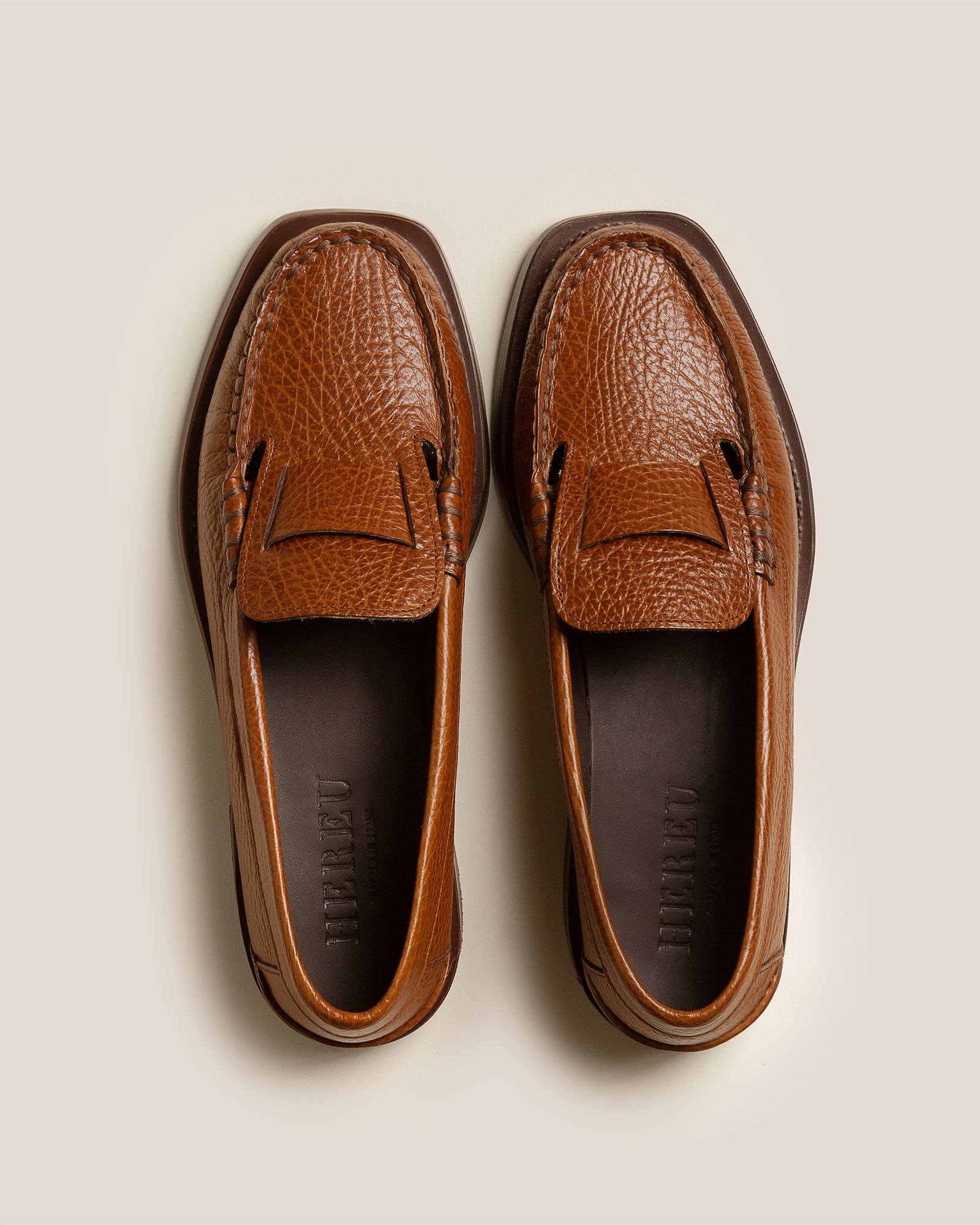 HEREU Women’s Shoes Sineu Grainy – Interlaced-detail Slip-on Loafer | Tan