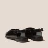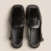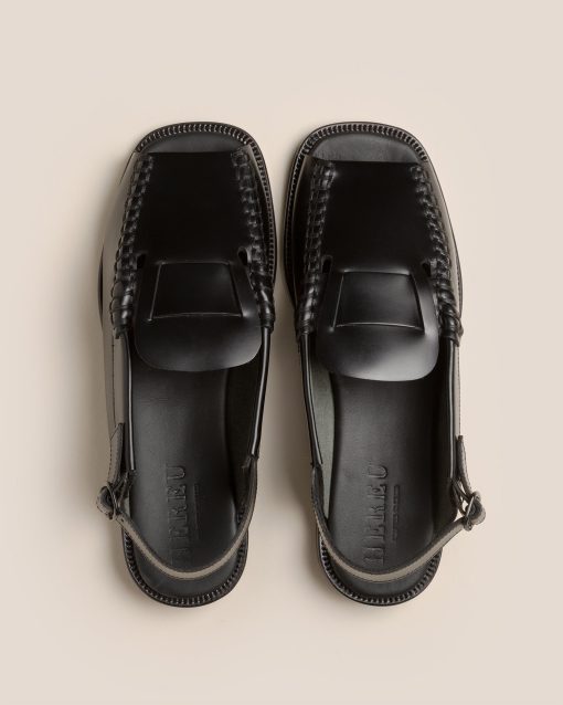Opened-toe slingback loafer with interlaced front detail crafted in Spanish structured calf leather.