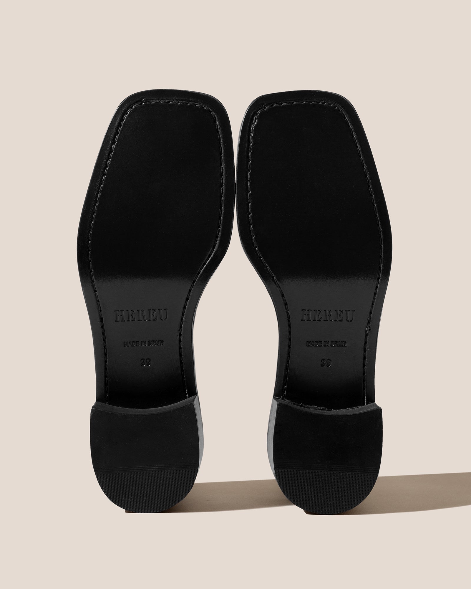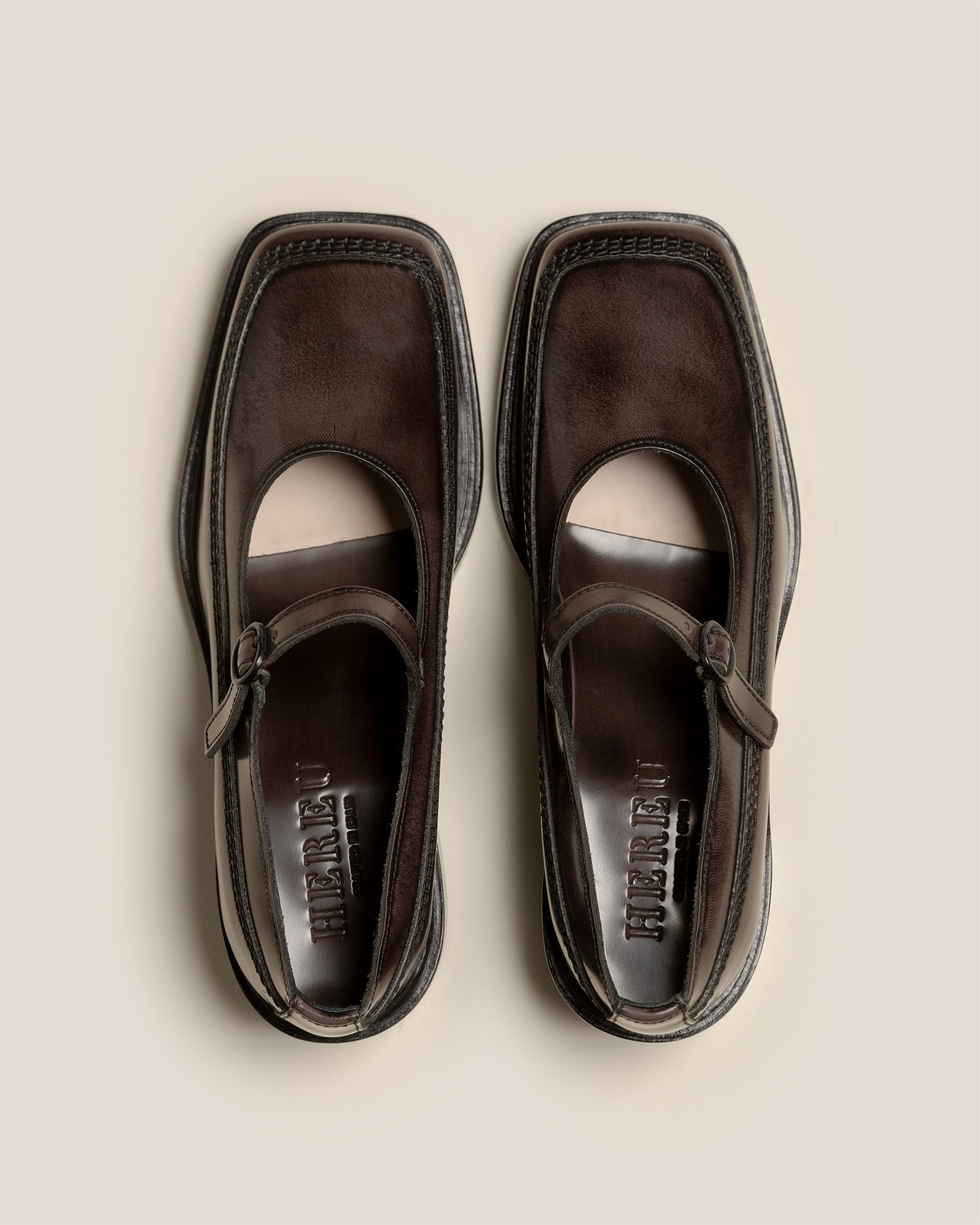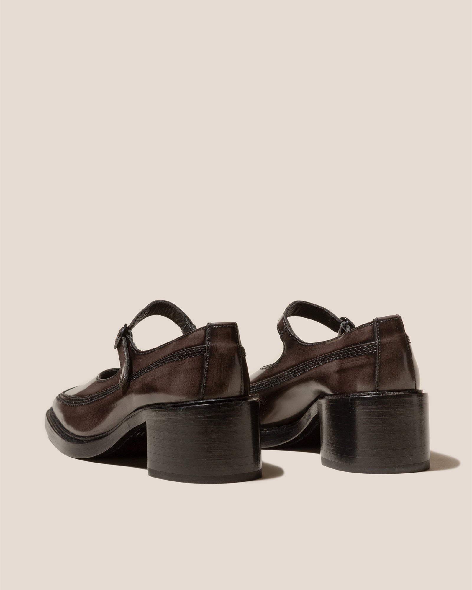 Mary Jane heeled loafer crafted in Spanish brushed leather.