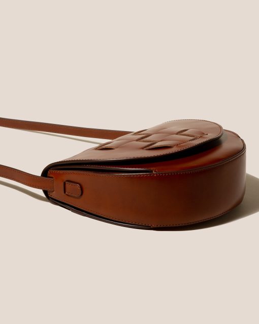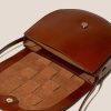 Satchel bag with interwoven front detail, crafted in Spanish leather and lined with calf suede.