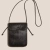 Woven flat square crossbody. Crafted in woven lambskin and lined with organic cotton canvas.